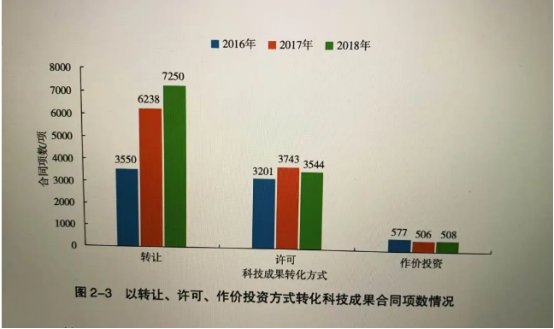 报告显示,2018年,3200家高校院所以转让、许可、作价投资方式转化科技成果的合同金额达177.3亿元,同比增长52.2%,合同项数为11302项。